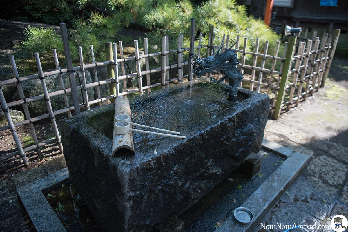 There were only a few other visitors to the area on the day we were there, and most of them were at the small temple towards the end of the 20-30 walk. This temple featured a shallow pool of water fed by water spurting from the mouths of two dragon heads which jutted out from a rock face partially covered with moss.